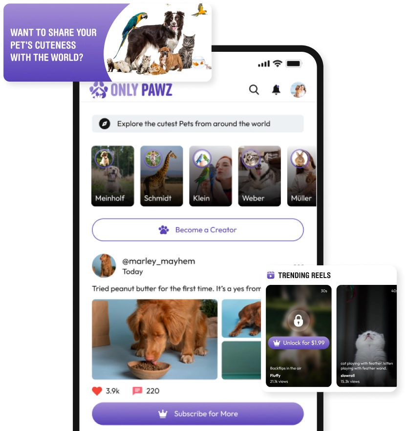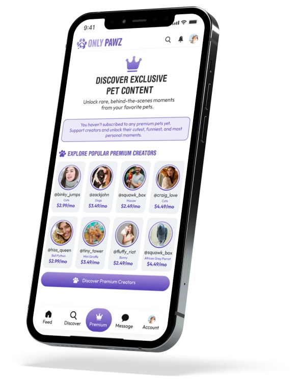 Monetize your pets’ charm with premium subscriptions and receive direct fan tips.